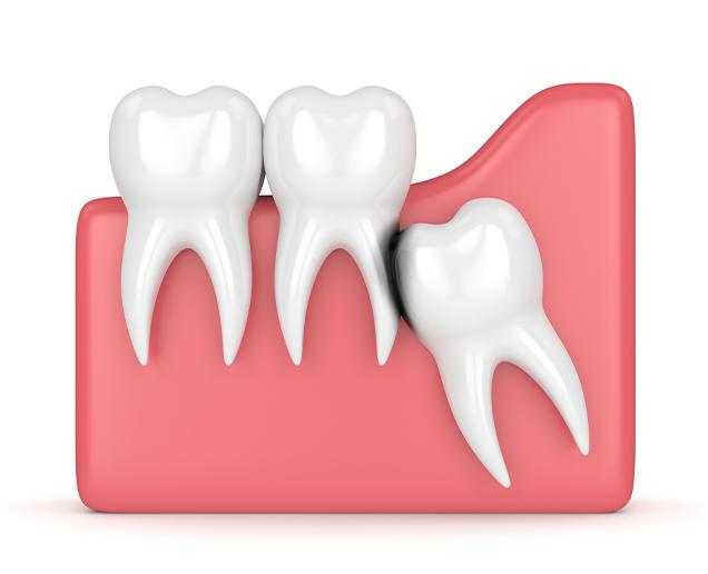 Limited space in the mouth often hampers the proper growth of wisdom teeth, leading to various challenges. Partial eruption, where wisdom teeth only partially emerge through the gums, can cause crowding, gum infections, cavities and significant pain. Additionally, wisdom teeth may deviate from their normal growth direction, resulting in crowding and damage to adjacent second molars. Impacted wisdom teeth occur when there is insufficient room for proper eruption, causing them to become lodged in the gums. Impacted wisdom teeth foster bacterial growth, which can lead to gum infections characterized by pain, swelling, discomfort and weakness.